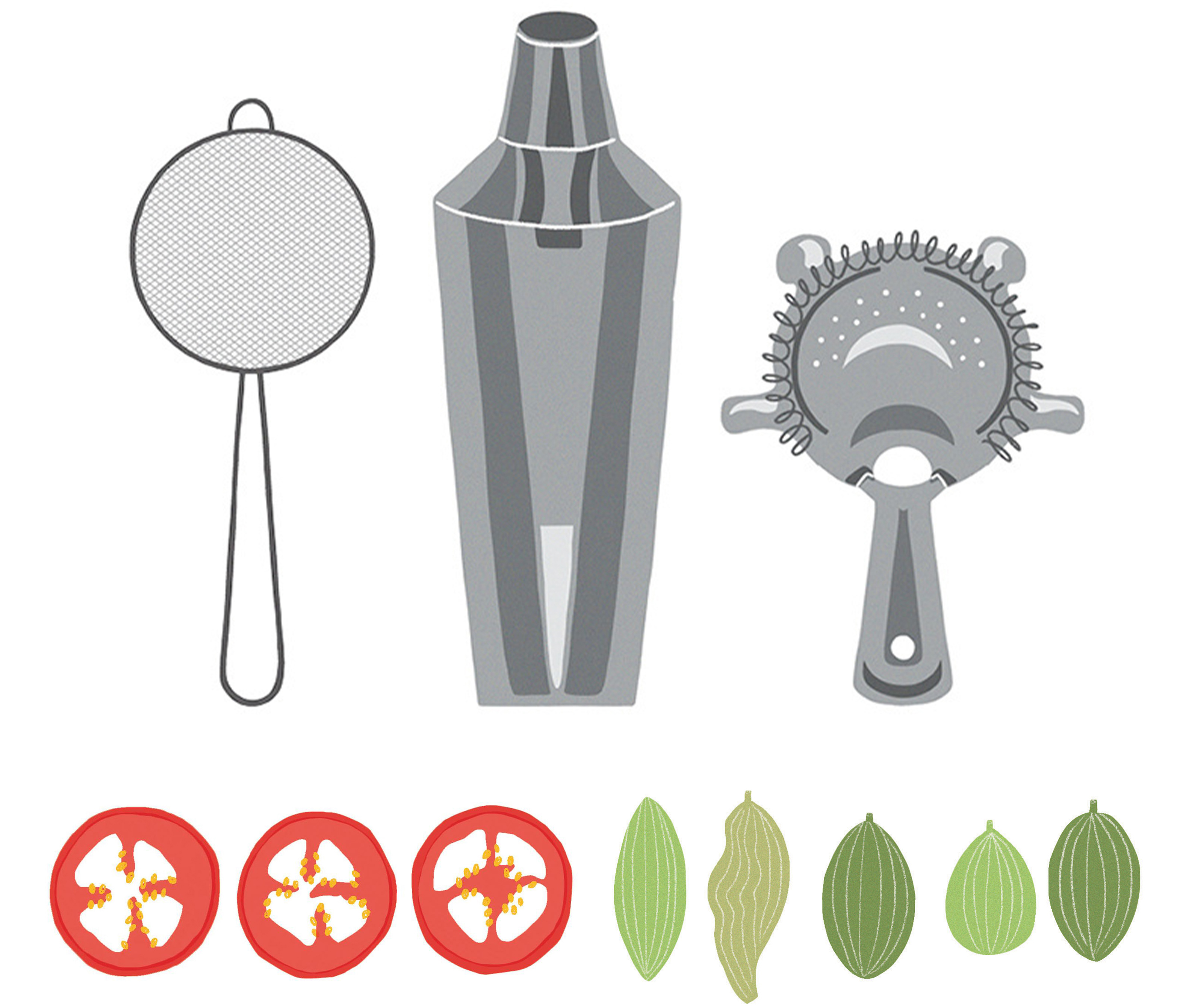 Selection of illustrations for a series of cocktail recipe books published by Hardie Grant Publishing.